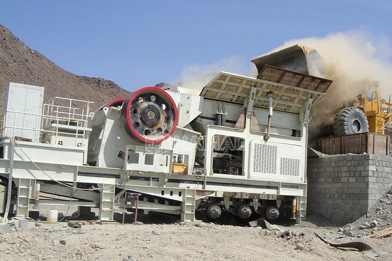 Ce concasseur à mâchoires mobile a été exporté vers Oman en 2010. C'est notre plus grand concasseur à mâchoires mobile. Ce client traite uniquement la grosse pierre à des tailles moyennes d'environ 150 à 180 mm, puis vend la pierre concassée aux clients de l'étape suivante. Il y a un convoyeur à bande sous le crible vibrant et il y a une barre grizzly à l'extrémité avant de l'alimentateur vibrant. Ainsi, la pierre de petite taille qui n'a pas besoin d'être écrasée sera d'abord éliminée. Vous verrez deux convoyeurs à bande pour transporter les petites pierres.